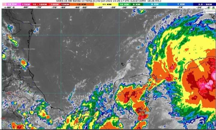 PODER Y CRÍTICA | REDACCIÓN | Se emite Alerta Azul de Alejamiento para el norte de Quintana Roo (Tulum, Solidaridad, Cozumel, Puerto Morelos, Benito Juárez, Isla Mujeres y Lázaro Cárdenas), por la depresión tropical número uno, que se localiza aproximadamente 120 kilómetros al nor-noroeste de Cozumel y a 50 kilómetros al suroeste de Cabo, Catoche, la cual presenta vientos máximos sostenidos de 55 km/h, rachas de 75 km/h y desplazamiento hacia el norte a 7 km/h, se espera oleaje elevado de 2 a 3 metros en costas de Quintana Roo.