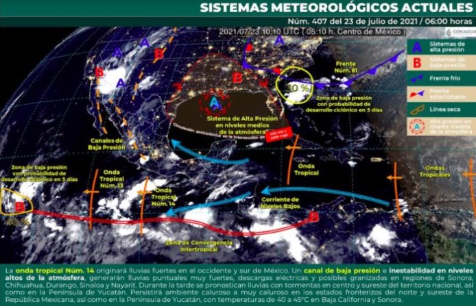 Este sistema por su distancia no representa influencia alguna a las condiciones meteorológicas de la Península de Yucatán y Estado de Quintana Roo, se mantendrá en vigilancia y se informará cualquier evolución.