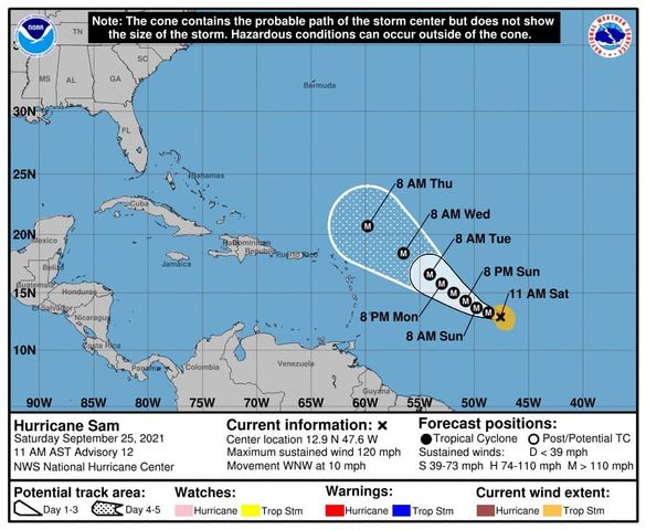 Chetumal, Q. Roo, sábado 25 de septiembre de 2021, poderycrítica.- El huracán “Sam” del océano Atlántico es el séptimo que se forma en la temporada, ya alcanzó la categoría 3 en la escala Saffir-Simpson, se ubica aproximadamente a 4,260 kilómetros al este de las costas de Quintana Roo, por su ubicación y trayectoria no representa riesgo para el Estado.