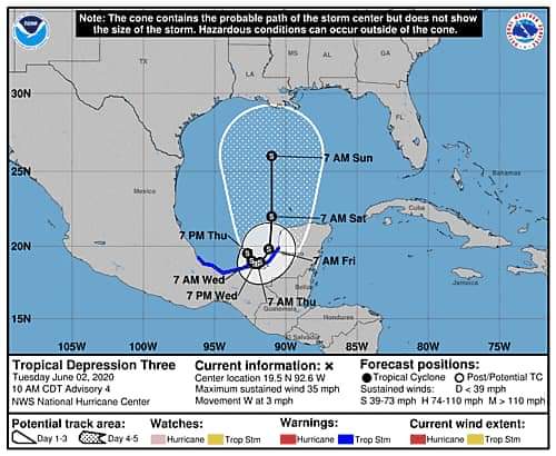 Cancún, Q. Roo, Martes 02 de Junio de 2020, poderycrítica.- La depresión tropical 3 ya es tormenta tropical Cristóbal.