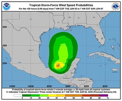 Cancún, Q. Roo, Martes 02 de Junio de 2020, poderycrítica.- La depresión tropical 3 ya es tormenta tropical Cristóbal.