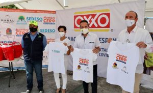 En la entrega de la donación de despensas, estuvieron presentes Lili Hernández, presidenta de la Asociación Civil Hanal; Juan de Vere Rangel, gerente de plaza del Grupo Oxxo, y José Luis Soberón, gerente de Protección Patrimonial Oxxo.