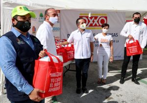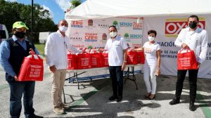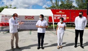 Cancún, Q. Roo, Jueves 10 de Diciembre del 2020, poderycrítica.- El gobernador Carlos Joaquín recibió la donación de 907 despensas de la cadena comercial OXXO, que se suman al programa “Hambre Cero” para reducir la carencia alimentaria de las familias afectadas por la pandemia de la covid-19.