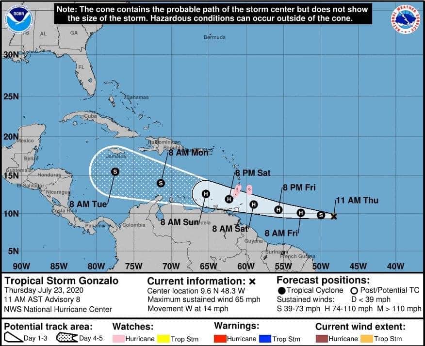 Chetumal, Q. Roo, Jueves 23 de julio de 2020, poderycrítica.- La tormenta tropical “Gonzalo” se fortalece y empieza a ser foco de atención en por lo menos cinco países.