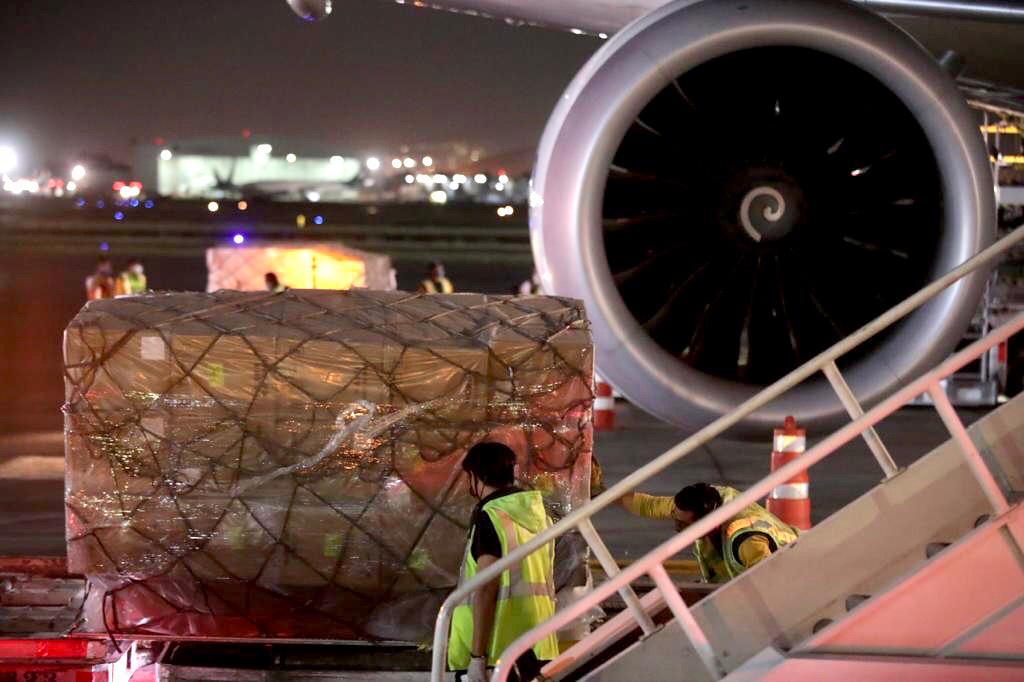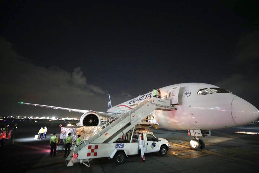 El día de hoy arribó al Aeropuerto Internacional de la Ciudad de México (AICM) el noveno vuelo del puente aéreo México-China con equipo de protección para personal médico y de enfermería consistente en 137 mil 200 goggles adquiridos por el Instituto de Salud para el Bienestar en el marco de la estrategia del Gobierno de México contra el COVID-19.