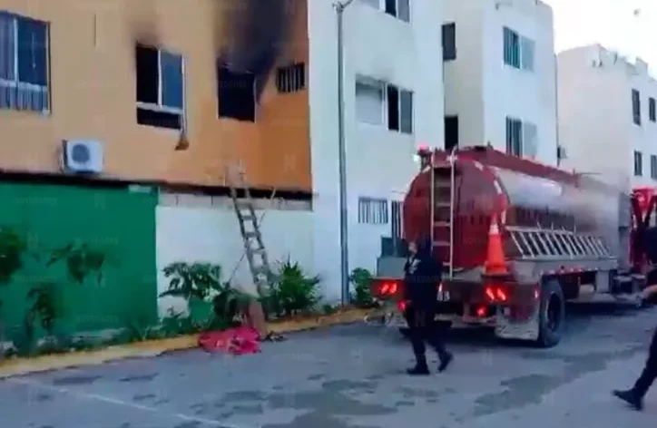 PODER Y CRÍTICA | REDACCIÓN | La tarde de hoy, en el fraccionamiento Cielo Nuevo en Cancún, uno de los departamentos se vio envuelto en humo por un incendio producido al interior del mismo.
