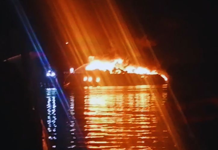 PODER Y CRÍTICA | REDACCIÓN | Una embarcación resultó consumida en llamas en la bahía de Isla Mujeres, esto de acuerdo con los primeros reportes policiacos, a las 20 horas de este viernes, 26 de julio,