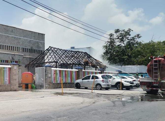 PODER Y CRÍTICA | REDACCIÓN | Una palapa en el área de juegos infantiles, del colegio Leonardo Da Vinci, se quemó por completo la tarde de hoy, sin que se reportaran personas lesionadas.