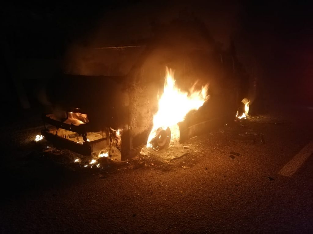 Fue la noche de este domingo que se recibió un reporte al número de emergencias sobre una camioneta que estaba incendiándose, a la altura del kilómetro 166 + 800 de la carretera federal 307, Reforma Agraria – Puerto Juárez, tramo Felipe Carrillo Puerto – Tulum, precisamente en el paradero de la comunidad de Tres Reyes.