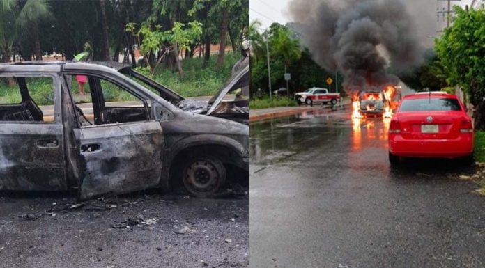 PODER Y CRÍTICA | REDACCIÓN | Un vehículo Dodge Voyager color gris se incendió por completo esta mañana de lunes sobre la avenida Las Torres, en Cancún, a la altura de la supermanzana 505, sin que se reportaran personas lesionadas, según informaron las autoridades.