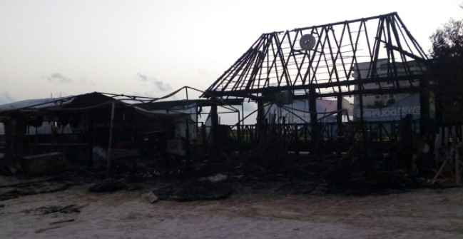 Asimismo, en la segunda palapa, de aproximadamente 6×8 metros, se quemaron dos cilindros de 20 kilogramos, mesas y sillas de plásticos, 30 botes, al parecer thinner, así como un refrigerador, dos neveras grandes, mesas de madera, tres botes de plástico para basura, entre otros artículos que no se pudieron identificar.