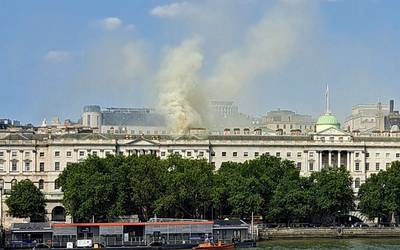 PODER Y CRÍTICA | REDACCIÓN | Diez camiones de bomberos y 70 efectivos se desplazaron para responder a un incendio en el emblemático edificio de Somerset House, situado en el centro de Londres y a orillas del río Támesis.