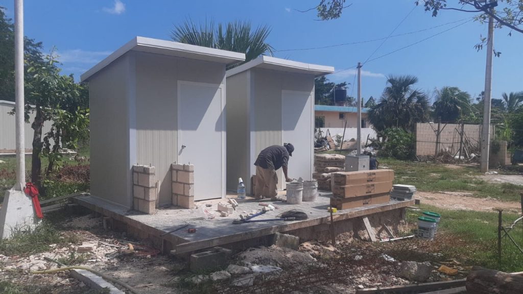 Además cuentan con dos sanitarios móviles tipo caseta con todos los accesorios de un servicio sanitario fijo, los espacios son individuales para niños y niñas.