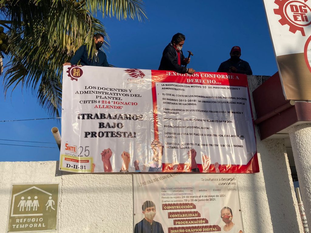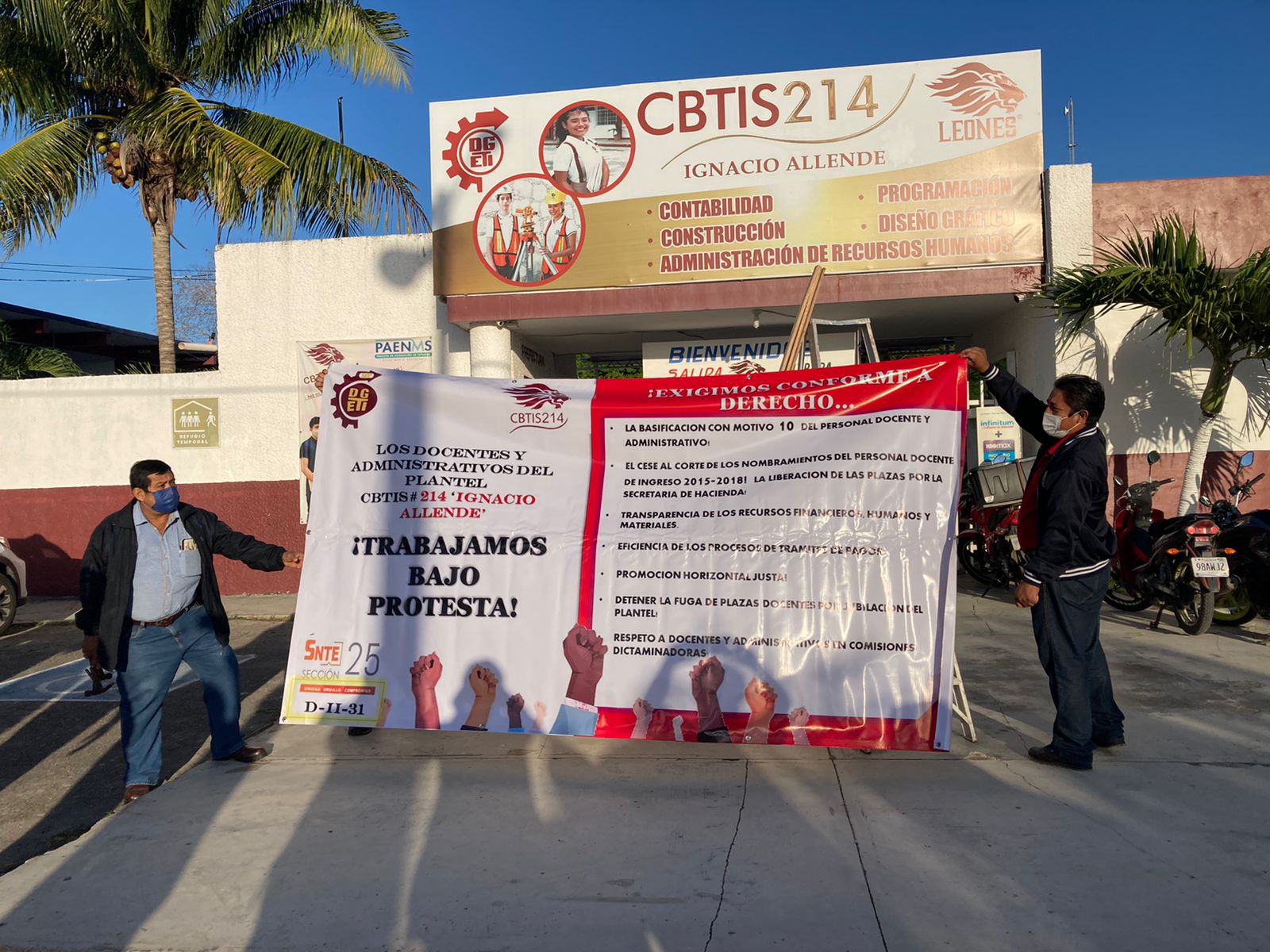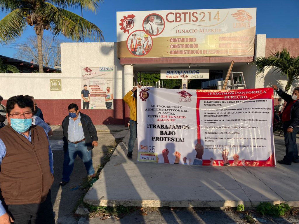 PODER Y CRÍTICA | SAMUEL CAAMAL | Las irregularidades y violaciones a derechos laborales ocasionaron manifestación pacífica de trabajadores del Centro de Bachillerato Industrial y de Servicios (Cbtis) 214. No suspenderán labores pero trabajarán bajo protesta.