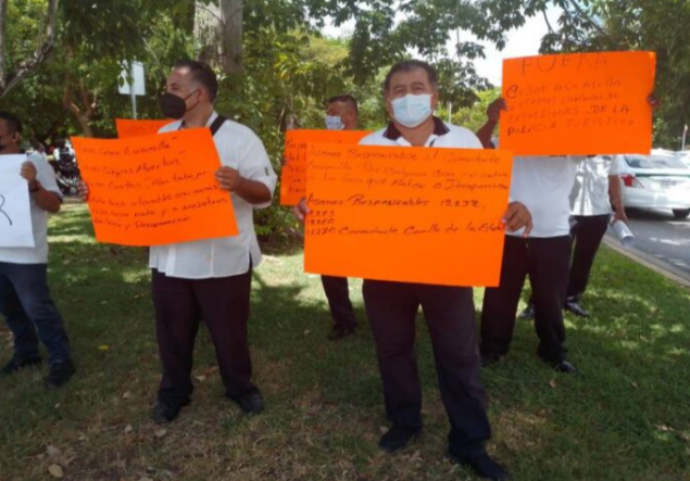 Cancún, Quintana Roo, miércoles 28 de julio del 2021, poderycritica.- Un grupo de taxistas cerraron la entrada a la Zona Hotelera, para manifestarse en contra del director de la Policía Turística, César Escamilla Pacheco, al que acusaron de extorsionarlos y de no hacer nada contra las ejecuciones y “levantones” que padecen.