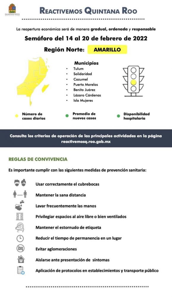 En la región norte que comprende los municipios de Tulum, Solidaridad, Puerto Morelos, Benito Juárez, Cozumel, Isla Mujeres y Lázaro Cárdenas el índice de contagios es de 0.47 puntos una de las mejores tasas de los dos años.