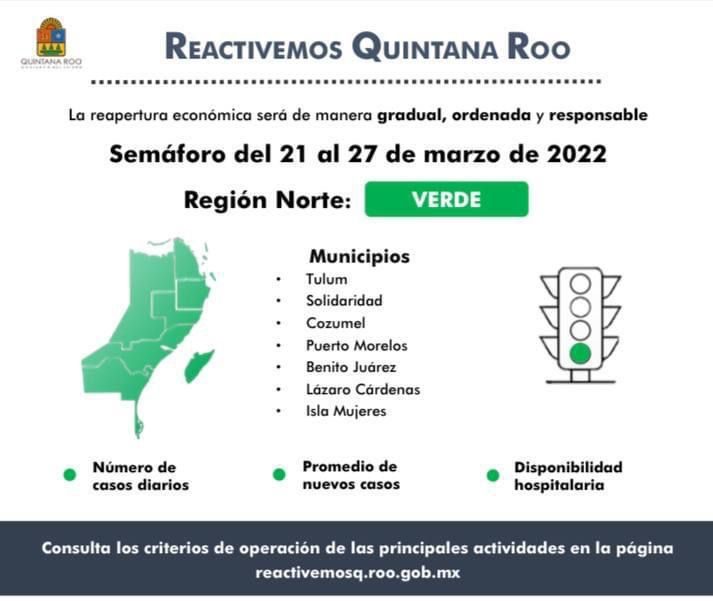Se mantiene nuevamente semáforo verde para Quintana Roo