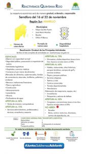 Chetumal, Q. Roo, Jueves 12 de Noviembre del 2020, poderycrítica.- El gobernador del estado Carlos Joaquín mencionó que del 16 al 22 de Noviembre tanto en la zona sur como en la zona norte del estado se mantendrá el semáforo amarillo. Apuntó que se ha detenido el ritmo de contagio y se ha mostrado un pequeño descenso. Ocupación hospitalaria por COVID-19 es menor al 12%.