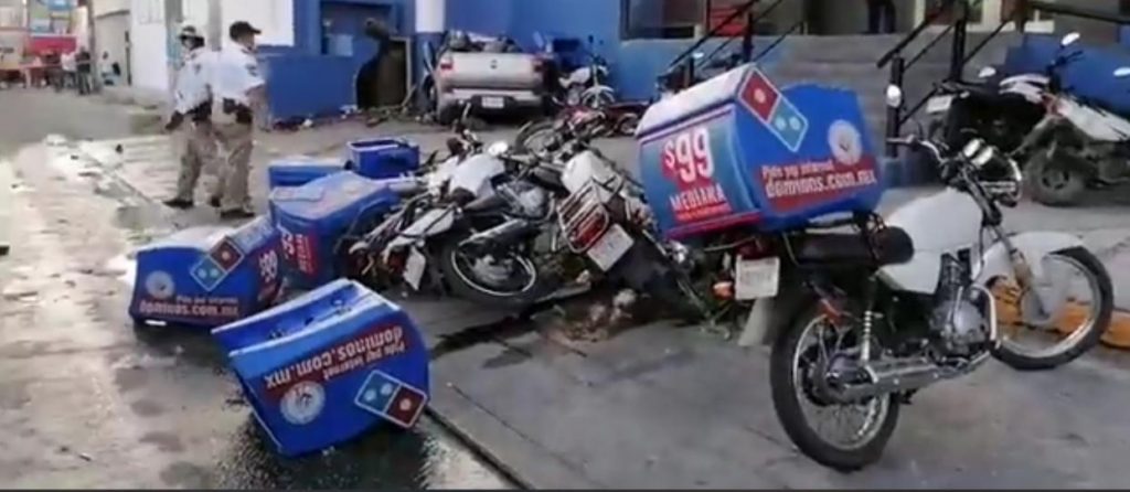 Los primeros reportes datan que arrolló ocho motocicletas, algunas de la empresa y otras de clientes que estaban en el establecimiento de gustando su pizza.