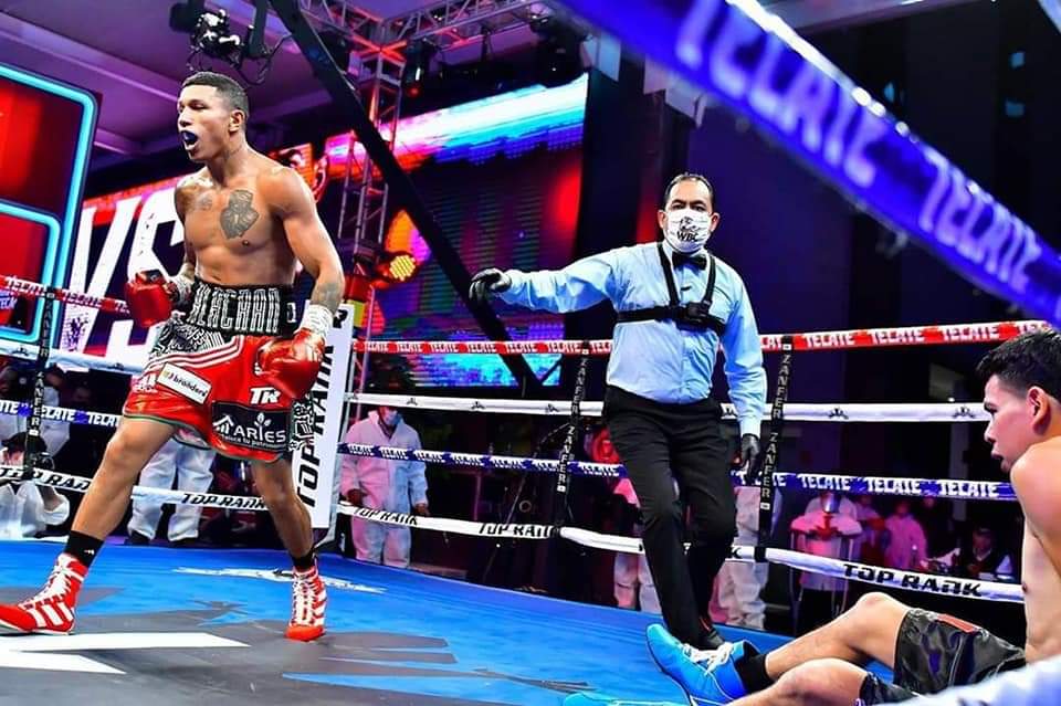 Miguel Berchelt, campeón Superligero del Consejo Mundial de Boxeo, derrotó por la vía del cloroformo a Eleazar «tronco» Valenzuela en el regreso a los cuadriláteros en los estudios de TV Azteca en la Ciudad de México.