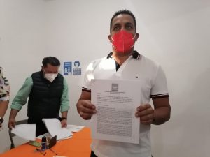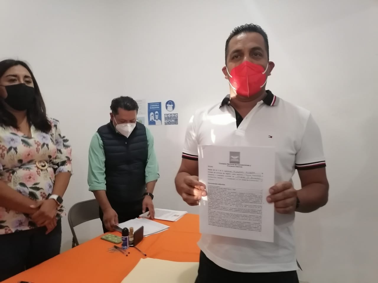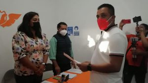 Esta tarde, entregó la documentación correspondiente ante el MC, a efecto de participar como contendiente de cara al Proceso Electoral Ordinario 2020-2021 a efectuarse el próximo seis de junio.