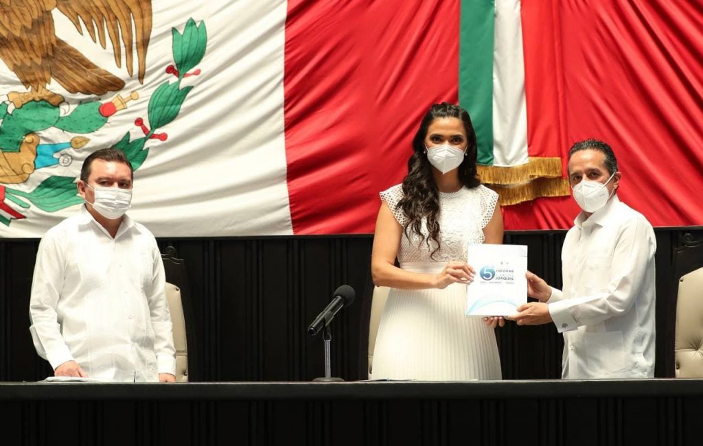 El gobernador Carlos Joaquín cumplió con el artículo 66 de la Constitución Política del Estado Libre y Soberano de Quintana Roo al entregar ante los diputados de la LVI Legislatura del Congreso del Estado el 5º Informe de rendición y fiscalización de cuentas que guarda la administración pública.