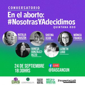 En el caso de OSC #GobernanzaMX, la Dra. Mónica Franco, especialista en salud reproductiva, participará en el conversatorio virtual “En aborto, nosotras ya decidimos”, en donde se realizará un recorrido por la lucha de la despenalización aborto en Quintana Roo y para lo cual, han sido invitadas mujeres que lo han vivido desde diferentes perspectivas.