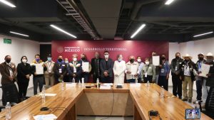 Representantes de los ejidos de Santa Ana Jilotzingo, del municipio de Otzolotepec, en el Estado de México; Ranchos Unidos, del municipio de Valle de Santiago, en Guanajuato; Doctor Belisario Domínguez, del municipio de Mulegé, en Baja California Sur; Laguna de Costa Rica, del municipio de Lázaro Cárdenas, en Quintana Roo y Corrales, Sandías y Presidio de Abajo, del municipio de Tepehuanes, en Durango, recibieron las carpetas básicas que acrediten finalmente la resolución de tierras a su favor.