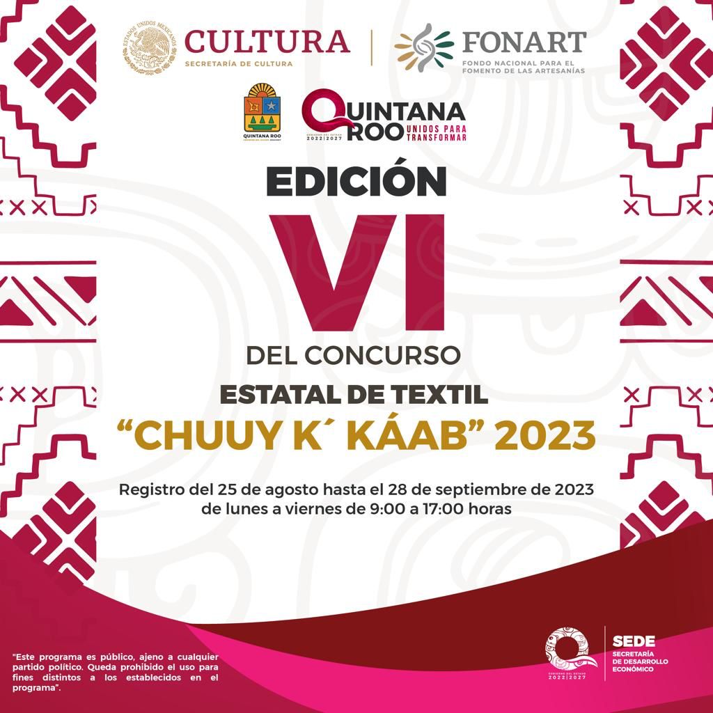 PODER Y CRÍTICA | REDACCIÓN | Para reconocer, promover el arte de bordado, técnicas ancestrales y el talento de las y los artesanos, que permitan preservar las tradiciones culturales de Quintana Roo, el Gobierno del Estado, en colaboración con el Fondo Nacional para el Fomento de las Artesanías (FONART), dieron a conocer la convocatoria del VI Concurso Estatal de Textil “Chuuy K’Káab” 2023.