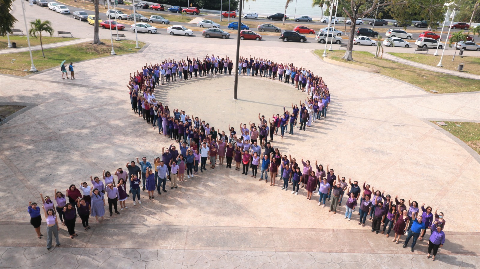 Más adelante, personal de la SEFIPLAN, participó en la formación del Mega Moño conmemorativo por el Día Internacional de la Mujer, realizado en la Explanada de la Bandera en la ciudad capital.