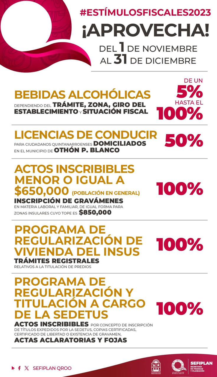 En todo el estado, a los propietarios de negocios con venta de bebidas alcohólicas se les otorga del 5 hasta un 100 por ciento de descuento dependiendo del trámite, zona geográfica, giro del establecimiento y situación fiscal; por concepto de pago de los derechos de expedición, cambio de propietario, cambio de domicilio y giro, refrendo, comodatos, permisos provisionales y especiales.