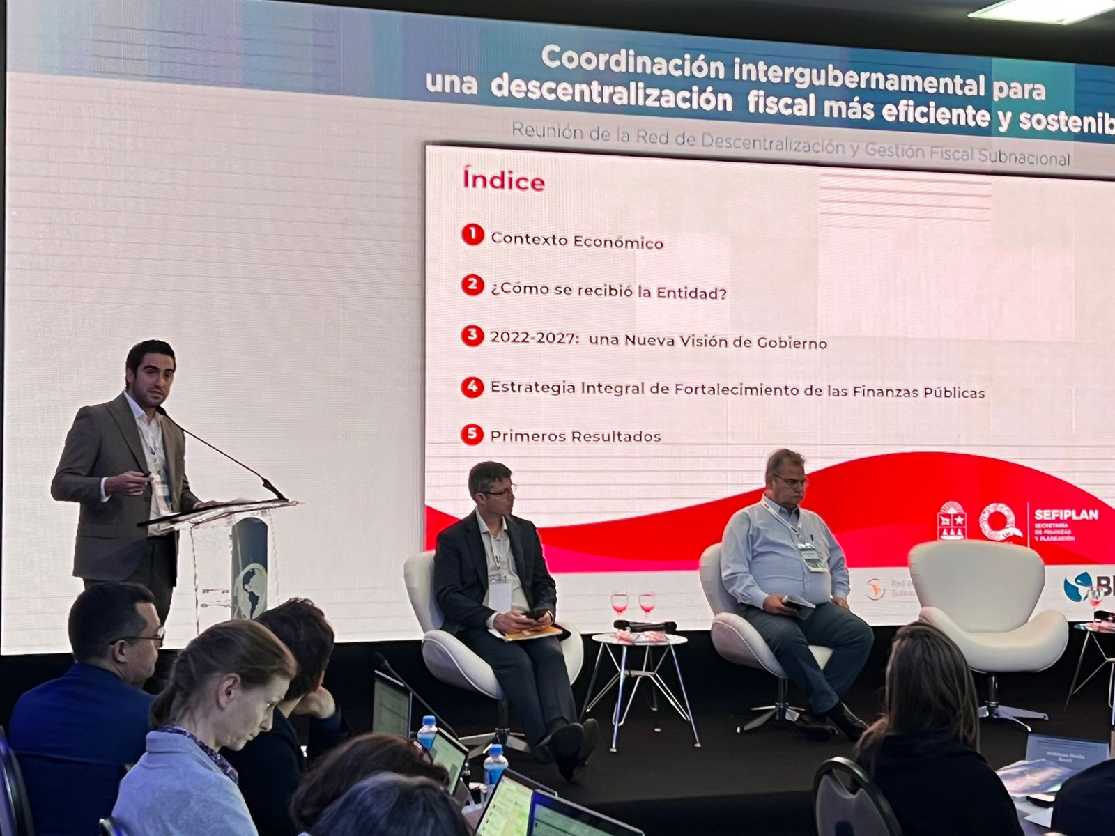 El titular de la SEFIPLAN, intervino en un panel con el tema ¿Cuál es el papel de los gobiernos subnacionales para incorporar en su gestión fiscal la mitigación y adaptación al cambio climático?, exposición que compartió con Fernando Renoir Baca Rivera, titular de la Unidad de Coordinación con Entidades Federativas de la Secretaría de Hacienda y Crédito Público (SHCP).