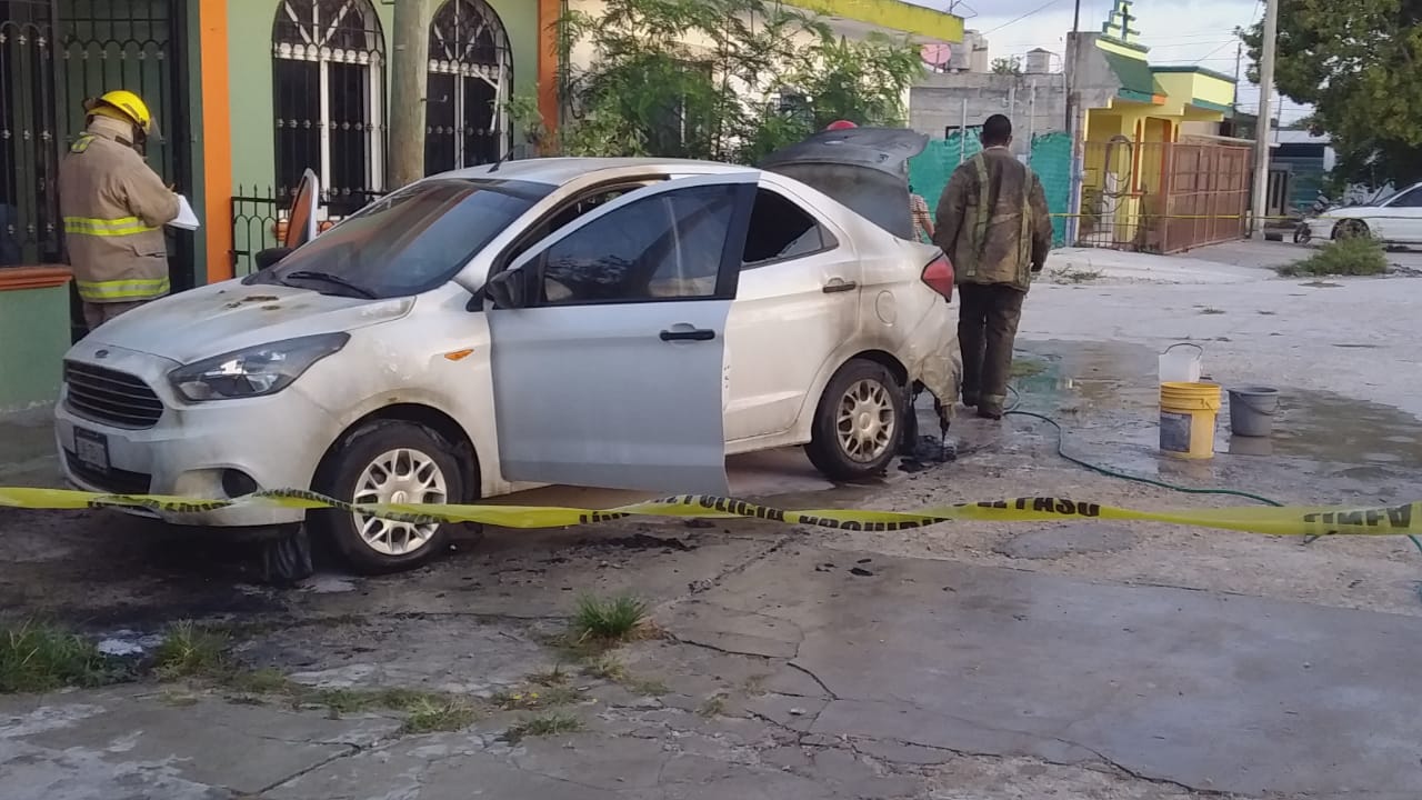 Chetumal.- Un vehículo quedó semi calcinado luego de que le fuera arrojado gasolina e incendiado por sujetos desconocidos.