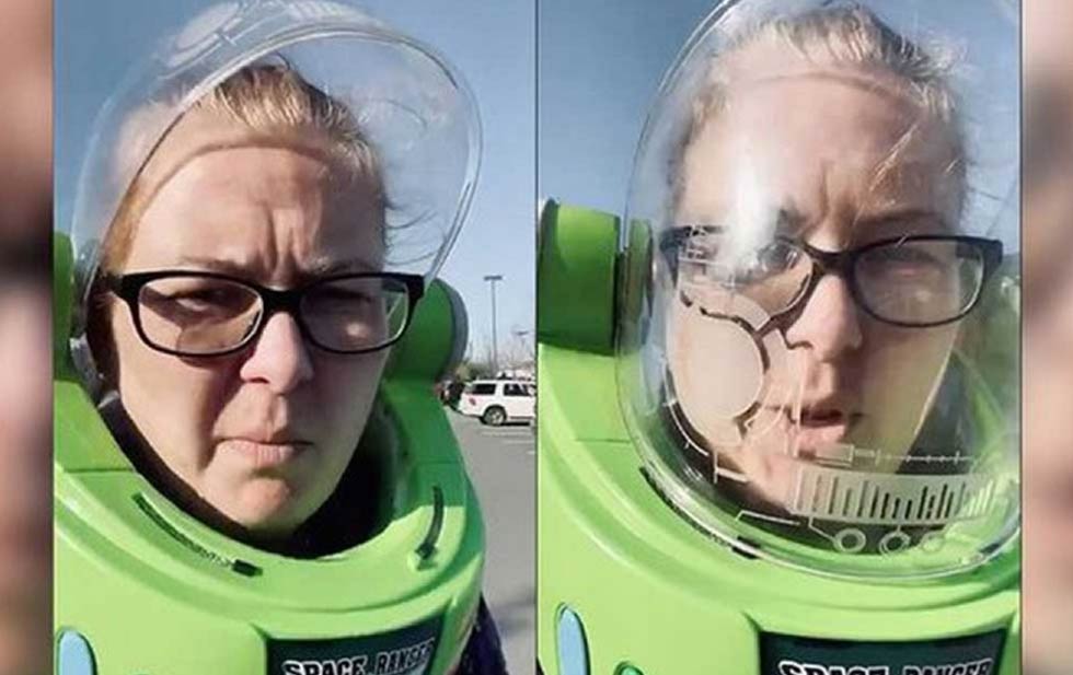 EU, 21 abril; poderycritica.-Una mujer en Estados Unidos se volvió viral en redes sociales, posterior a que asistiera a realizar sus compras a un centro comercial mientras usaba un casco del personaje Buzz Lightyear, de la película Toy Story.