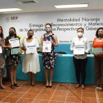 Ante la presencia de los directores generales y coordinadores académicos de los subsistemas que participan en el proyecto piloto, y el Subsecretario de Educación Media Superior y Superior, Jaime Alberto González Mendoza, la Secretaria de Educación, Ana Isabel Vásquez Jiménez otorgó reconocimientos a los docentes por concluir los talleres de ´Violencia Basada en Género´ e ´Introducción a la Teoría y Práctica de la Educación Socioemocional´; además, entregó material didáctico entre los que se destaca la Cartilla de Derechos Sexuales y Derechos Reproductivos de las Personas con Discapacidad y la Cartilla de Derechos Sexuales en Adolescentes y Jóvenes.