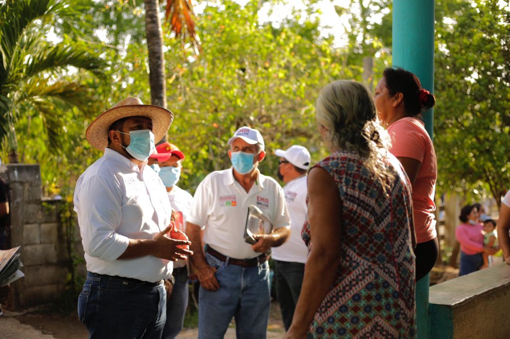 Kantunilkín, Q. Roo, martes 25 de mayo de 2021, poderycrítica. El representante de los partidos políticos MAS, MORENA, PV Y PT, Emir Bellos, no baja la guardia en esta contienda electoral, a pesar de la cantidad de gente que se ha sumado al proyecto que respalda su coalición, el candidato continúa caminando las calles de las comunidades y en esta ocasión retomó su recorrido en la cabecera municipal.