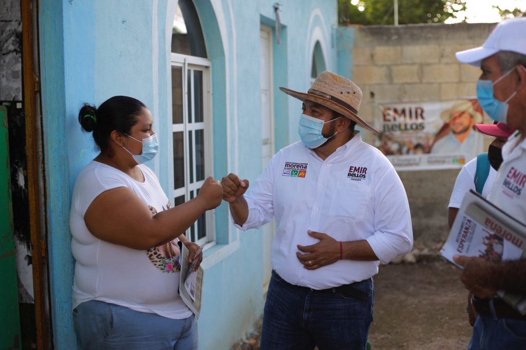 Emir Bellos se comprometió a estar siempre presente, característica que ha resaltado en los 36 días transcurridos, mencionó que el propósito en esta campaña austera es visitar casa por casa hasta el último día, con la finalidad de tener un acercamiento directo con el pueblo.