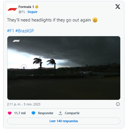 A menos de 8 minutos para que terminara la clasificación, comenzó a llover sobre el circuito. “Se hizo de noche”, dijeron por la radio de una de las escuderías.