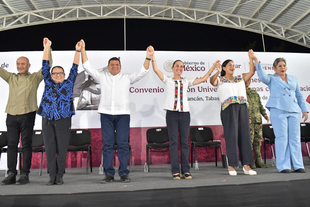 PODER Y CRÍTICA | REDACCIÓN | El gobernador de Tabasco, Javier May Rodríguez, destacó que la primera visita de Claudia Sheinbaum Pardo como presidenta de México trajo importantes noticias para los tabasqueños. En su visita al municipio de Balancán, Sheinbaum presentó la Pensión Mujeres Bienestar y firmó el Convenio de Pensión Universal para Personas con Discapacidad, reafirmando su compromiso de mejorar las condiciones de vida en el estado.