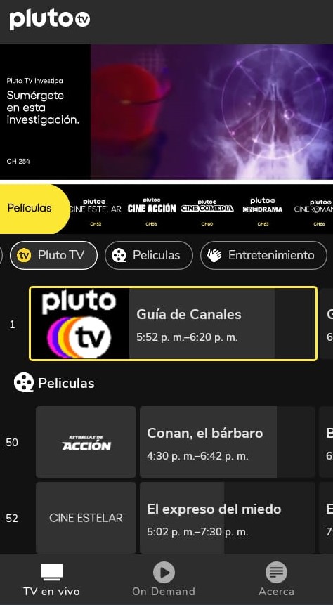 PLUTO TV es una app que puedes manejar desde cualquier dispositivo, desde un celular inteligente, una tablet o desde tu smart tv. Es muy facil de ocupar,