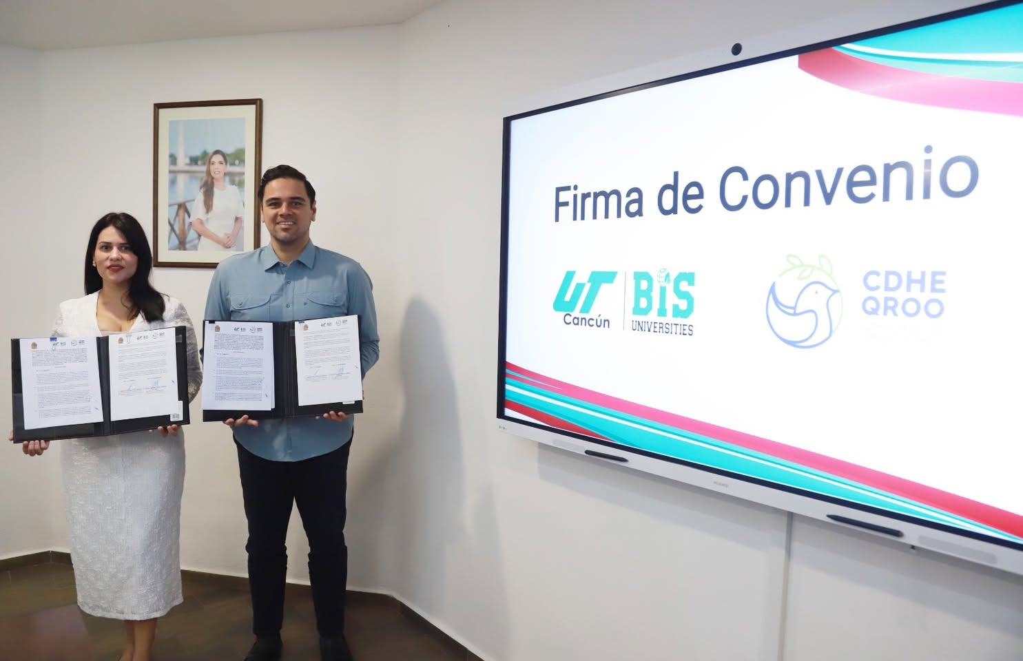 Enrique Baños ‘infla’ su desempeño con acuerdos y convenios ‘patito’ que no representan gran aporte a la comunidad universitaria pero sí, para su promoción personal: “¡Buenas noticias! Firmamos un convenio de colaboración con la Comisión de los Derechos Humanos del Estado de Quintana Roo para trabajar juntos en la promoción y defensa de los derechos humanos…¡Un paso más hacia una sociedad más justa y equitativa! Agradezco especialmente a la Presidenta Omega Ponce Palomeque por su apoyo y liderazgo en este importante acuerdo”.