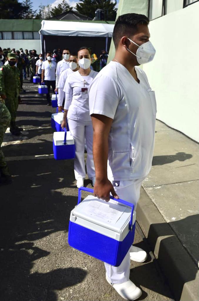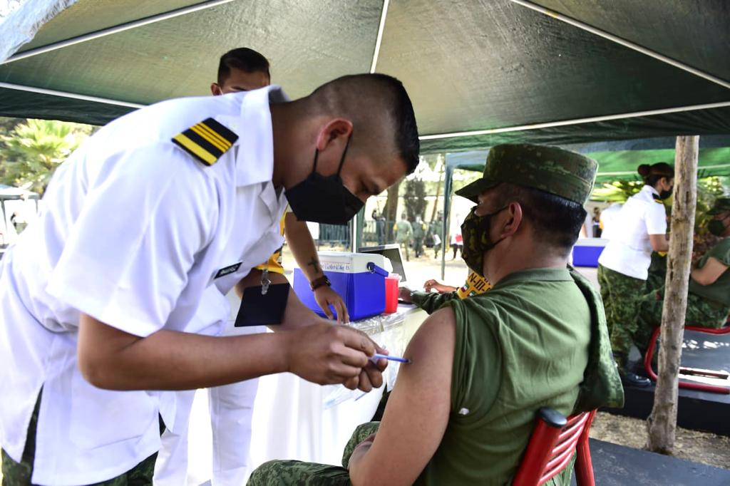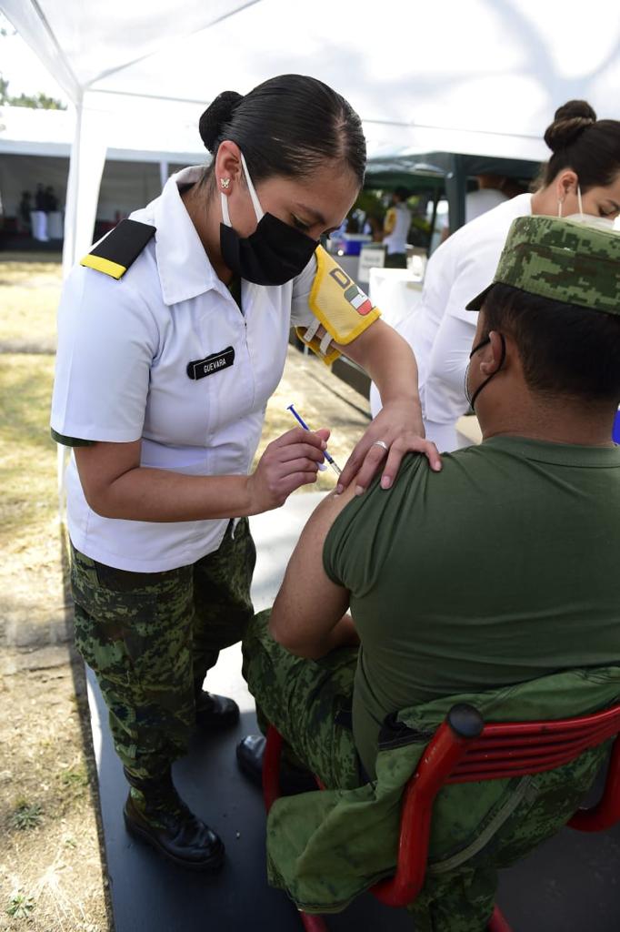 La Sedena participó con 500 elementos del Ejército Mexicano; entre ellos, personal que aplicará la vacuna, servicios administrativos, técnicos, de apoyo, seguridad y transporte.