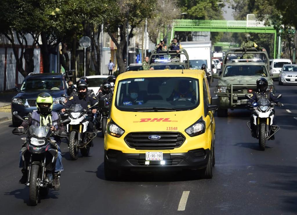 Este ensayo continuó con el traslado de las vacunas en un vehículo escoltado por unidades de la Sedena hasta las instalaciones del 81/o Batallón de Infantería Campo Militar número 1-C Tlalpan, Ciudad de México.