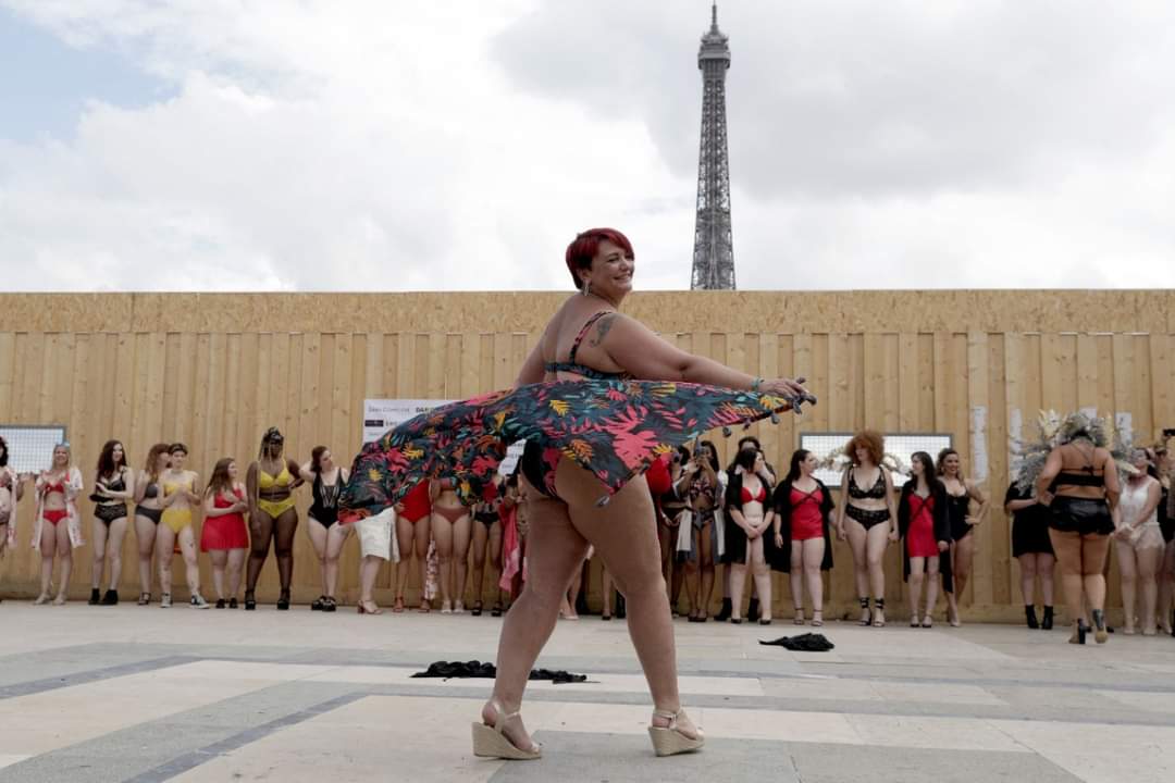 Ciudad de México,  Lunes 28 Junio de 2021, poderycrítica.-  Frente a la icónica Torre Eiffel, modelos de todas las tallas y orígenes posaron y presumiendo sus cuerpos durante el evento «The All Sizes Catwalk».