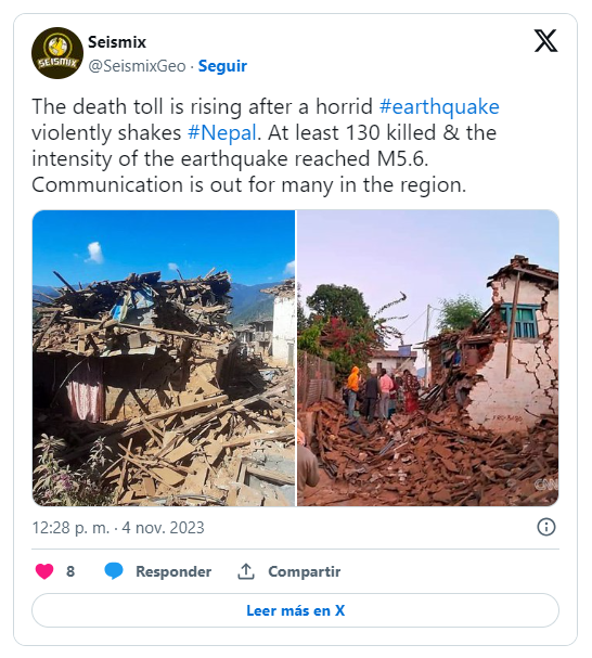 “El número de heridos podría ascender a cientos y el de muertos también”, explicó Harish Chandra Sharma, funcionario del distrito de Jajarkot sobre los ciudadanos a 500 kilometros al oeste de la capital Katmandú, en la zona montañosa.