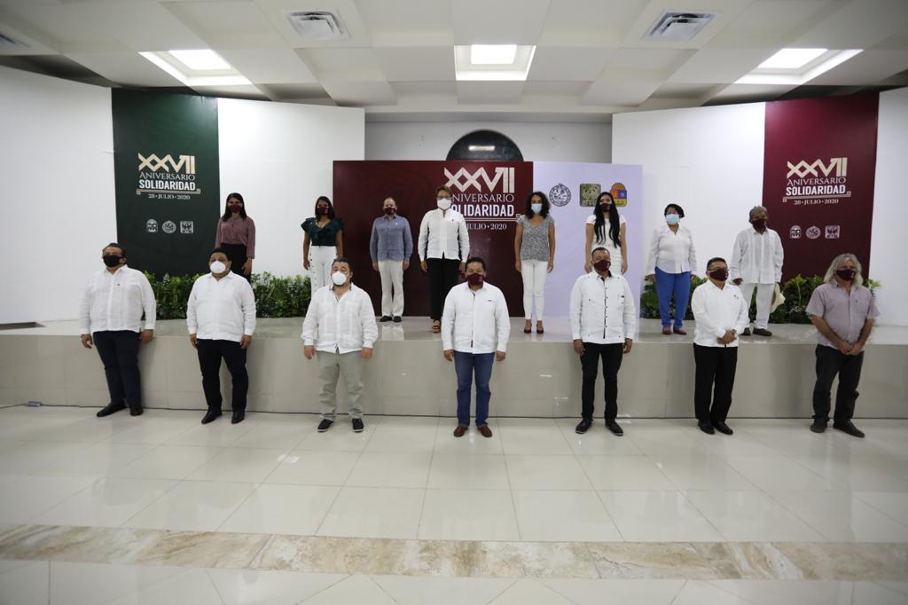 Por su parte, el gobernador del estado, Carlos Joaquín González, a través de un video, al felicitar a la alcaldesa por esta conmemoración, así como a los regidores y habitantes del municipio, destacó que en estos tiempos tan complicados, lo ideal es dar continuidad a las políticas públicas que han dado crecimiento al municipio, lleno de ancestrales tradiciones y cultura, pero con la mirada puesta en el futuro. “Eso garantiza un camino seguro hacia adelante. Solidaridad y Quintana Roo deben caminar por el sendero de las realidades”, expresó tras resaltar la historia del que fuera hace 27 años una villa de pescadores y hoy día es un municipio fuerte, pujante y de un alto crecimiento, con un futuro prometedor.