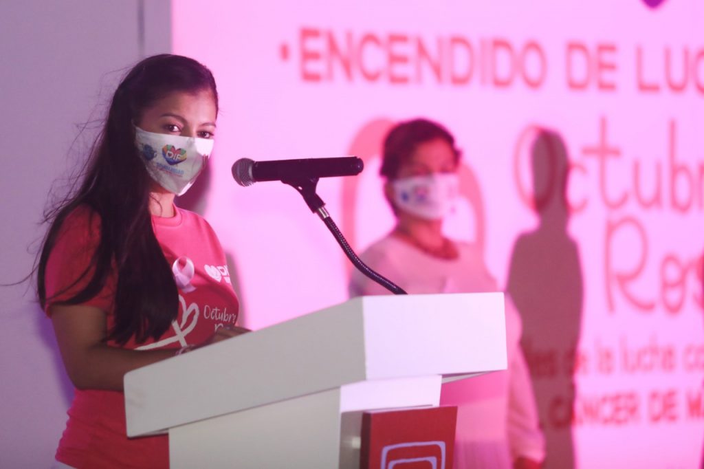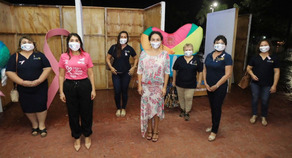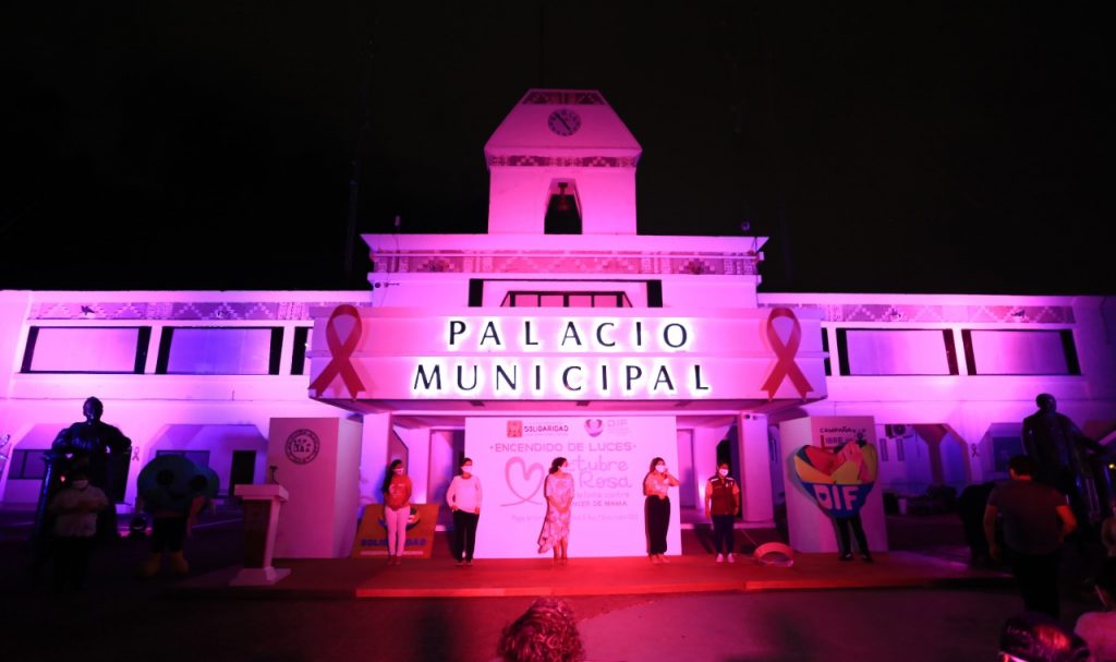 Playa del Carmen, Q. Roo, Viernes 02 de Octubre de 2020, poderycrítica.-  Con el encendido de luces de color rosa  en los edificios del Palacio Municipal y las instalaciones del DIF en el fraccionamiento Villas del Sol y Puerto Aventuras,  la presidenta honoraria de ese organismo descentralizado, Karla Robles Miranda, dio  inicio a  las acciones que a lo largo del mes se realizarán en el municipio para la prevención del cáncer de mama.