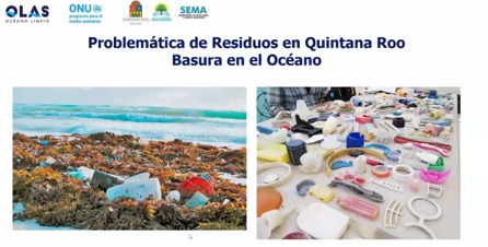 La representante en México de ONU Medio Ambiente Dolores Barrientos, expuso la problemática actual de la contaminación marina, los océanos del mundo comprenden más del 70% de la superficie y el 97% del planeta, es el principal regulador del clima, los beneficios que proporciona se ven afectados por el deterioro de la salud de los ecosistemas marinos y costeros, ocasionados por la contaminación, el cambio climático, la sobre pesca y la pérdida de hábitat y biodiversidad.