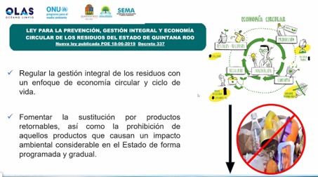 El titular de Ecología y Medio Ambiente dijo que, es indispensable articular los tres niveles de gobierno en las competencias que cada uno tiene, a la sociedad civil e iniciativa privada. La Nueva Ley de Residuos para la prevención, gestión integral y economía circular de los residuos del Estado de Quintana Roo se vislumbra como el documento articulador de esas políticas, es un instrumento de alternativas para adaptarse a las necesidades de cada región.