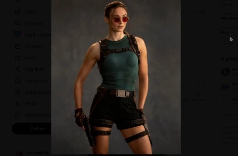La actriz británica Sophie Turner ha sido revelada como la nueva Lara Croft en la serie de televisión de Tomb Raider, producida por Amazon Prime Video. La imagen muestra a Turner vestida con el icónico atuendo de Lara, con shorts, camiseta sin mangas, mochila de cuero y un arma sujeta al muslo.